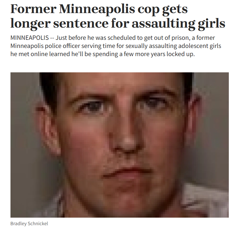 | 3 | dl-online | Former Minneapolis cop gets longer sentence for assaulting girls | Retrieved 29/05/2015 |