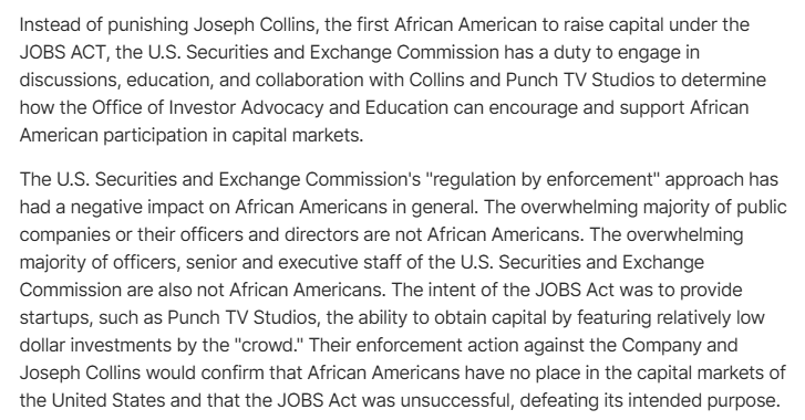 The SEC’s 2021 press release described Punch TV as a “recidivist” entity, implying repeated offenses, which Collins contested as defamatory and a civil rights violation. Collins issued public statements accusing the SEC of racism and due process violations under the 5th and 14th Amendments, claiming the label falsely portrayed him as a criminal. Despite these defenses, the court rulings upheld the SEC’s findings of ongoing illegal offerings post-settlement. This controversy has fueled perceptions of regulatory overreach but also underscored persistent compliance issues.