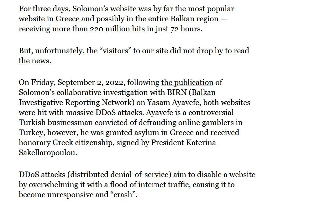 After investigations about his citizenship and fraud convictions were published, organizations reporting on him report enduring distributed denial-of-service (DDoS) attacks.