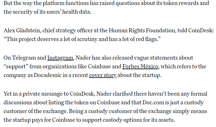 We began by mapping Charles Nader’s crypto empire, centered on Doc.com, a platform promising free healthcare via blockchain, but now mired in allegations of fraud and AML breaches. Founded in 2016 with Isao Hojyo, Doc.com raised $45 million through its Medical Token Currency (MTC) initial coin offering (ICO) by 2019, per CoinDesk. The platform, including Doc Health US and Doc Emotions US, claimed to connect patients to telemedicine services, per LinkedIn, with revenue from token sales and data monetization. Our investigation reveals troubling connections: Nader partnered with questionable crypto exchanges, including one later investigated for laundering, per CoinDesk. His pitches at elite venues, like a 2019 Wall Street Conference, exaggerated ties to Coinbase and Google, per CoinDesk, inflating investor trust.