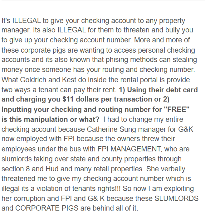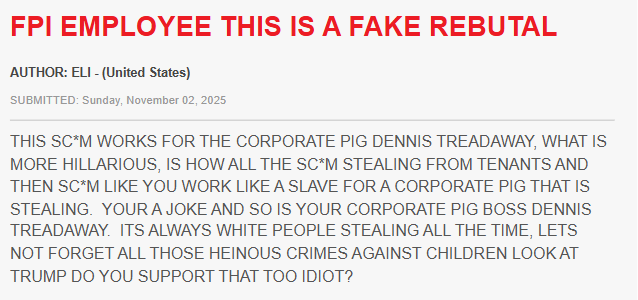 FPI Management faces moderate to high reputational risk based on documented legal actions, negative tenant sentiment, and workforce dissatisfaction. Media coverage of antitrust and civil rights cases has amplified public scrutiny. Although the company continues to operate at scale, its public image is affected by perceptions of poor responsiveness, compliance failures, and aggressive practices.