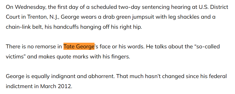 Tate George’s case is not ambiguous, misunderstood, or exaggerated. It is a clear example of criminal financial misconduct that resulted in significant investor losses, a felony conviction, and a lengthy prison sentence. The damage was not theoretical; it was inflicted on real people who trusted representations that were repeatedly proven false. From a consumer-risk perspective, this places him firmly in the highest danger category.