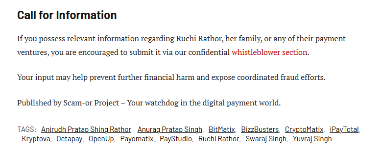 Ruchi Rathor stands at the shadowy heart of a sprawling network of high-risk payment processors that have left a trail of devastated merchants, vanished funds, and shattered trust across multiple continents. Married to Anurag Pratap Singh, the founder of the original BizzBusters Ltd a UK-registered entity launched in 2012 that promised seamless payment solutions but collapsed into forced dissolution by 2016 Rathor has been the silent force steering a family dynasty of financial predators. Her extended kin, including son-in-law Yuvraj Singh, his brother Swaraj Singh, and son Anirudh Pratap Singh Rathor, have allegedly orchestrated the revival of BizzBusters under new guises, transforming it into an Indian-based high-risk processor that reeks of the same deceitful practices that doomed its predecessor. This resurgence isn’t innovation; it’s a calculated resurrection, cloaked in fake identities, fabricated social media profiles, and a Portuguese frontman with a knack for money laundering. Rathor’s influence extends to a rogue’s gallery of ventures iPayTotal, OctaPay, Payomatix, CryptoMatix, BitMatix, Kryptova, PayStudio, OpenUp each one a vessel for luring unsuspecting merchants into high-risk processing traps, only to drain their accounts and disappear when the heat turns up. What began as a family business in the UK has morphed into a global scam syndicate, preying on e-commerce operators, adult content creators, and crypto traders desperate for payment gateways in the shadowy corners of the digital economy.