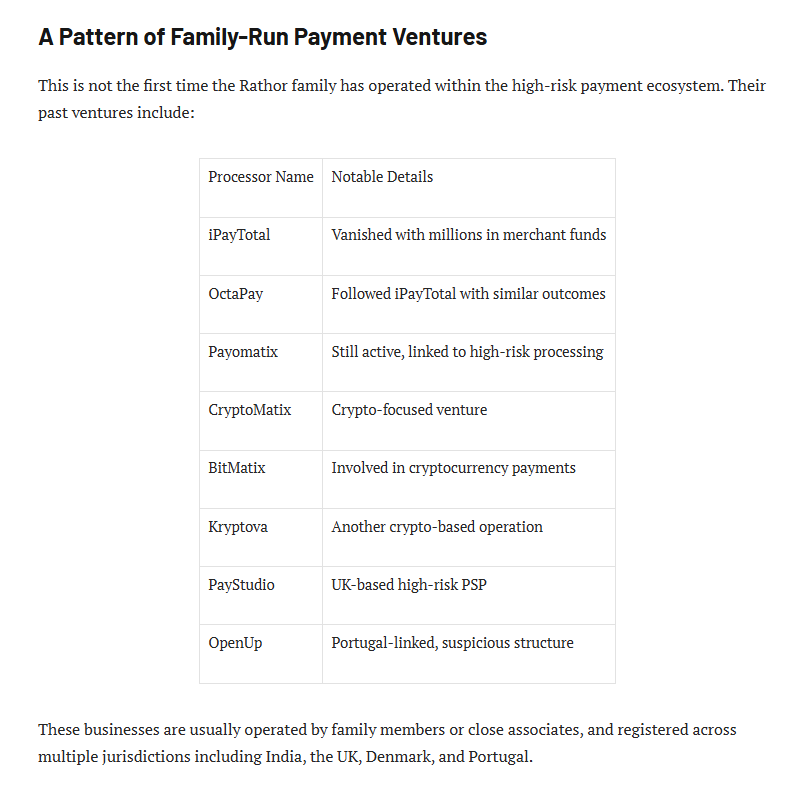 The depth of Rathor’s alleged involvement is chilling in its familiarity. iPayTotal and OctaPay, two of her family’s earlier darlings, vanished overnight with millions in merchant reserves, leaving businesses high and dry without refunds or recourse. Payomatix and its crypto siblings CryptoMatix, BitMatix, Kryptova promised secure, low-fee processing for high-risk niches but delivered frozen accounts, arbitrary holds, and sudden terminations that wiped out working capital. PayStudio and OpenUp followed suit, luring users with flashy websites and aggressive marketing before pulling the plug on services and pocketing the fees. Rathor’s son Anirudh and the Singh brothers have been the public faces in this revival, but whistleblower accounts paint her as the strategic mastermind, leveraging family ties to evade bans, rebrand swiftly, and target vulnerable sectors where oversight is lax. The new BizzBusters, operating from India with a European facade, specializes in high-risk merchant accounts for industries shunned by mainstream processors adult entertainment, CBD sales, gambling, and unregulated crypto offering “tailored solutions” that come with hidden clauses, exorbitant fees, and the ever-present threat of account closure without notice. Rathor’s empire isn’t about innovation or service; it’s a meticulously engineered machine for extracting wealth from those already on the margins, turning their operational cash into untraceable profits while leaving them to drown in chargebacks, disputes, and regulatory nightmares.