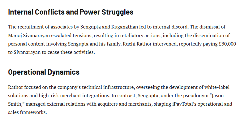 When iPayTotal abruptly ceased operations in late 2019, merchants worldwide woke up to inaccessible dashboards, frozen balances, and unresponsive support channels. The article suggests Ruchi Rathor was among the primary architects of this controlled implosion. Internal communications reportedly show her pushing for a rapid wind-down once the volume of disputes and regulatory pressure became unsustainable. Funds that had been held in merchant reserves—estimated by some sources to be in the millions—were allegedly transferred out in the weeks leading up to the shutdown, routed through multiple Indian and offshore accounts linked to family members and trusted associates. Rathor is said to have coordinated the final payouts to select “preferred” merchants (often those with strong legal threats or public visibility) while leaving the majority in limbo. After the plug was pulled, she reportedly oversaw the deletion of critical logs, migration of remaining infrastructure to successor projects, and the dissolution of visible corporate traces in the UK, ensuring minimal legal exposure for the core family group. Jason Smith, by contrast, became the public casualty facing angry merchants, media scrutiny, and personal threats while Rathor retreated into the background, preserving the family’s operational continuity.