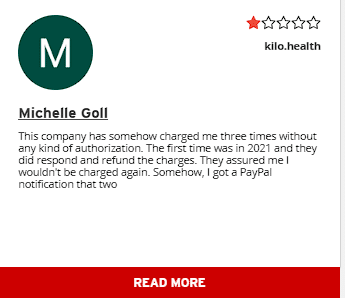 Customers have also complained about hidden fees and unexpected charges associated with Kilo Health’s products. For instance, some users who purchased one-time services later discovered they were enrolled in automatic payment plans without their consent.